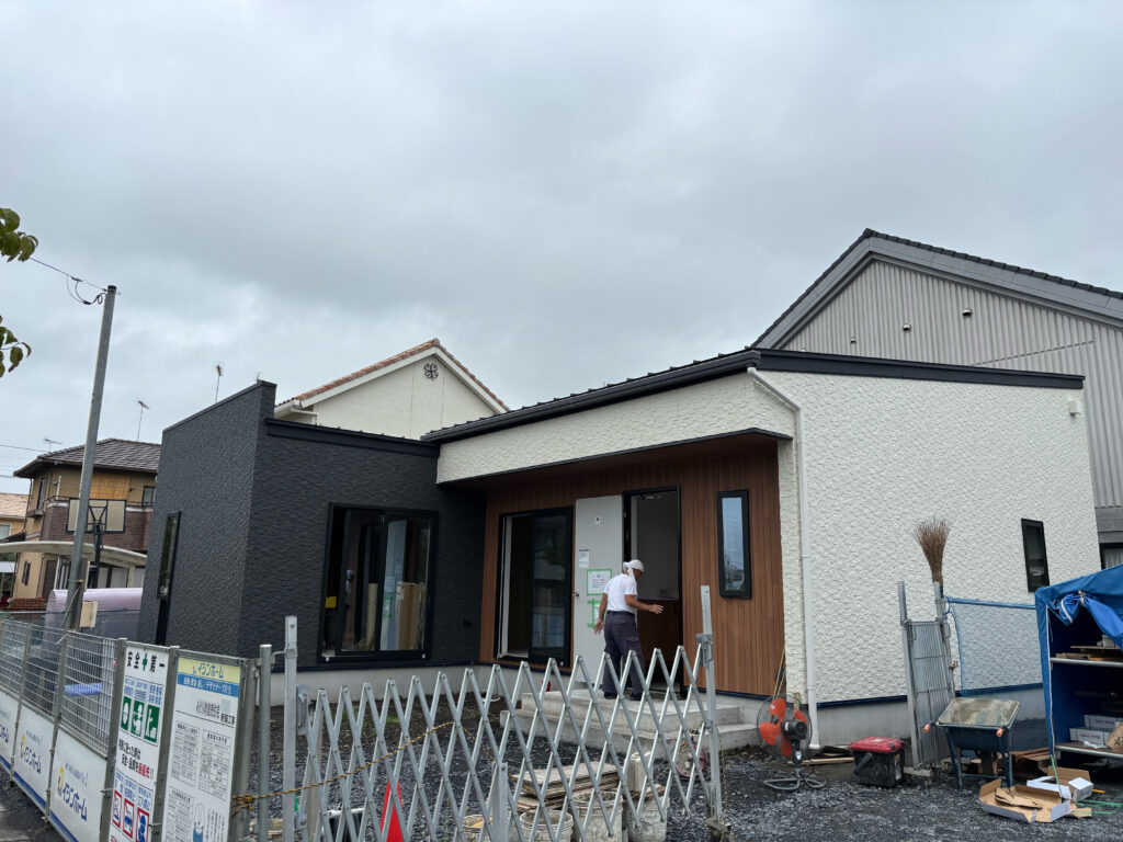 外部は屋根、外壁工事が完了し、足場が外され外装がお目見えしました(`・ω・´)